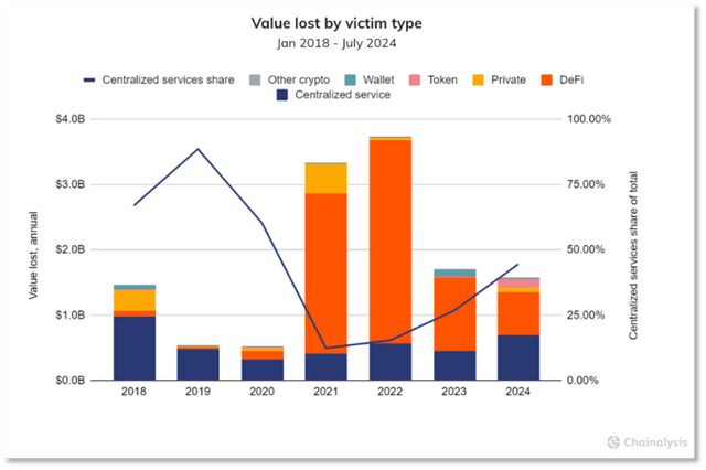 Chainalysis统计的各种加密犯罪受害类型中的损失价值